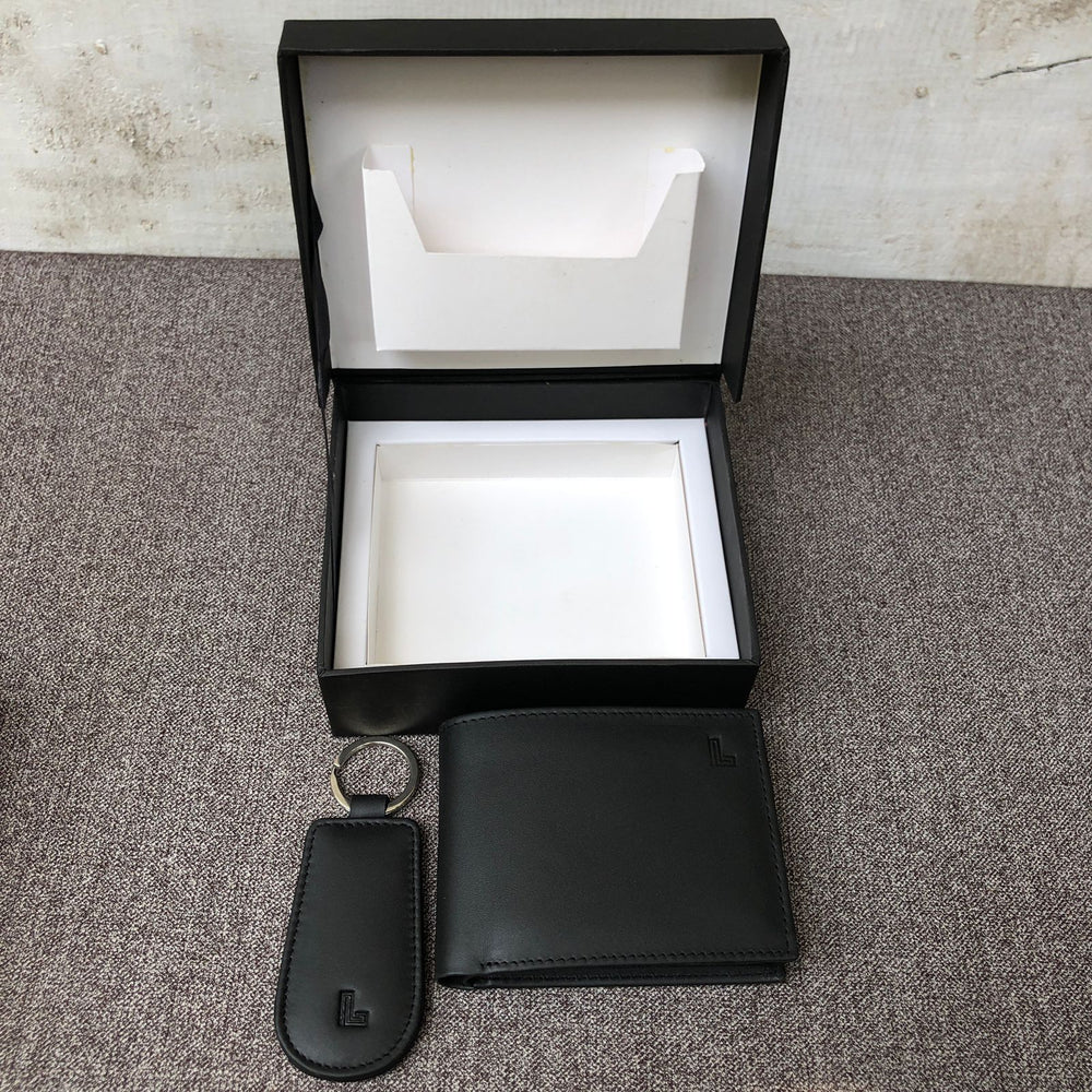 Simple, sleek, and versatile — this black leather wallet and keychain set is made for those who appreciate clean, classic style. Designed to hold essentials with ease, it's presented in an elegant box, ready for gifting.