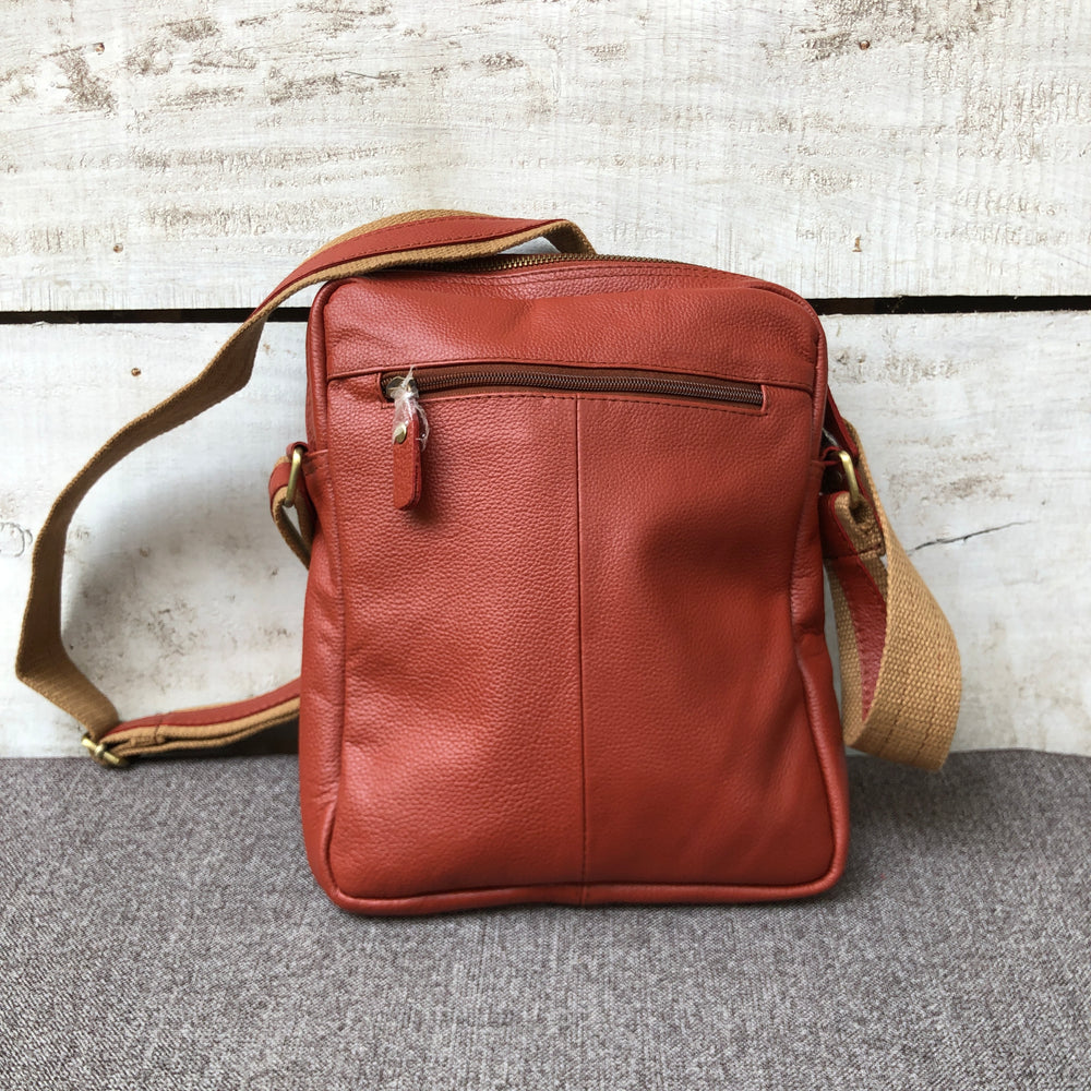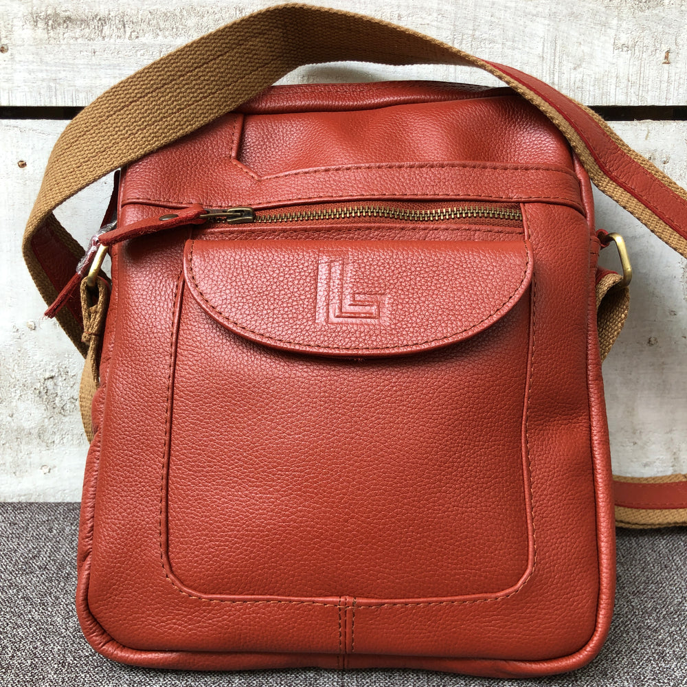 With its unique color and smooth finish, this maroon leather crossbody bag is a stylish choice for those who like something different. It holds the basics and adds a refined touch to your outfit.